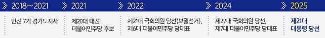 2022년 본격적으로 중앙무대에 올라온 이 당선인에게는 고난의 연속이었다. 행정가로서 뛰어난 성과를 거뒀지만, 정치의 세계는 달랐다. 이 당선인은 당시 당 주류였던 이낙연 전 국무총리와 대선 경선 과정에서 ‘대장동 의혹’ 등 이후 이 당선인의 아킬레스건으로 작용한 의혹들이 불거졌다. 해당 의혹들은 본선까지 이어지게 되고, 민주당은 양 후보 간 화학적 결합을 못 했다는 내·외부 평 속에서 이 후보의 2번째 대선 도전은 막을 내리게 된다.