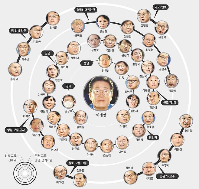 ‘변방의 장수’로 불렸던 19대·20대 대선 출마 시기를 거쳐 이재명 더불어민주당 체제를 완성한 뒤 치러진 이번 대선에서는 계파를 불문하고 당의 모든 인력이 한몸처럼 움직였다. 중앙선거대책위원회는 진영과 이념을 초월한 매머드급으로 꾸렸다. 이 당선인 측근 그룹들과 대선 과정에서 선대위에 합류한 인사들 중 일부는 이번 정부에서도 핵심 역할을 할 것으로 전망된다.