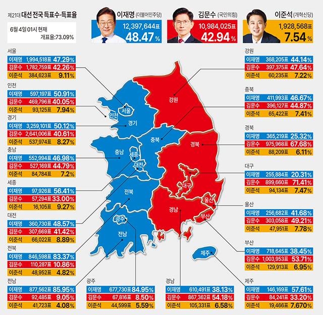 [지역별 득표율 분석해보니] 호남서 압도적 지지… 영남 보수층도 대거 이탈