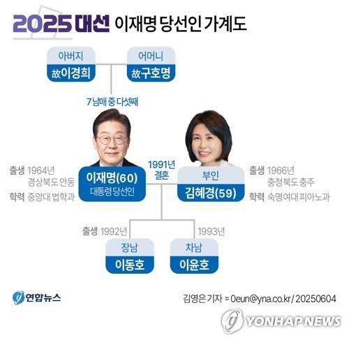 [그래픽] 2025 대선 이재명 당선인 가계도