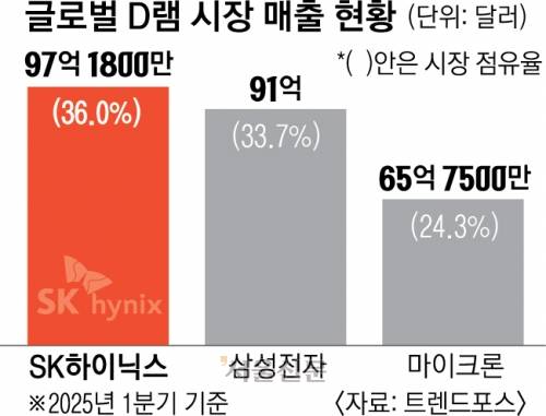 HBM의 힘… SK하이닉스, 1분기 D램 글로벌 1위