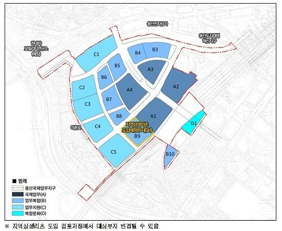 [용산국제업무지구 지역상생리츠 도입예정부지(안) (서울시제공=연합뉴스)]