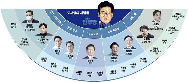 성남·경기 라인은 이 대통령이 성남시장·경기도지사로 재직할 때 함께 일한 '정치적 동지'다. 지금은 대장동 사건으로 기소돼 공식 활동을 중단한 정진상 전 당대표실 정무조정실장이 대표적 인물이다. 당 일각에선 정 전 실장이 외곽에서 여전히 영향력을 행사한다는 말도 나온다.