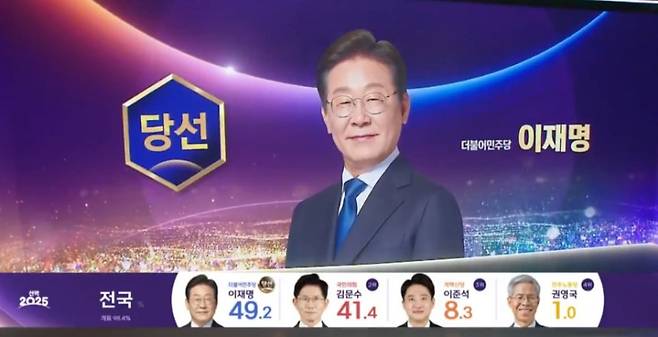 중앙선거관리위원회에 따르면 개표가 100% 완료된 가운데 이 대통령은 1,728만 7,513표를 얻어 득표율 49.42%를 기록했습니다.