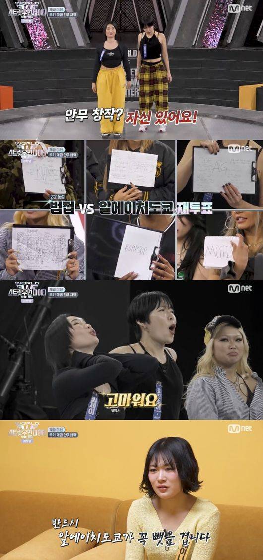 그러나 안무 경험이 많은 립제이와 효진초이 역시 만만치 않았다. 알에이치도쿄와 2대 2 접점을 이룬 가운데 재투표를 통해 범접의 립제이와 효진초이의 안무가 채택됐다. 이에 알에이치도쿄 레이나는 “우리가 이겼다고 생각했는데 굉장히 속상하다”라고 아쉬움을 드러냈다.