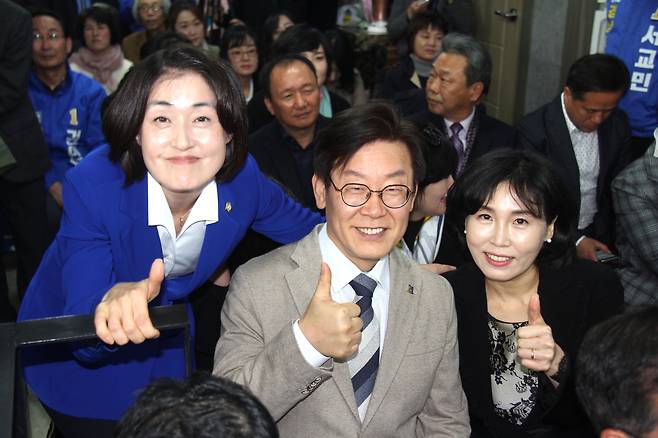 | ▲ 2018년 3월 24일 더불어민주당 창원시의원의 사무소 개소식에 참석했던 당시 이재명 경기도지사 예비후보와 부인 김혜경 여사. |