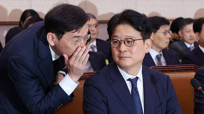 ▲ 지난 2024년 10월 18일 국회 법제사법위원회의 서울고검, 수원고검, 서울중앙지검 등에 대한 국정감사에서 이창수 중앙지검장과 조상원 4차장이 대화하는 모습.