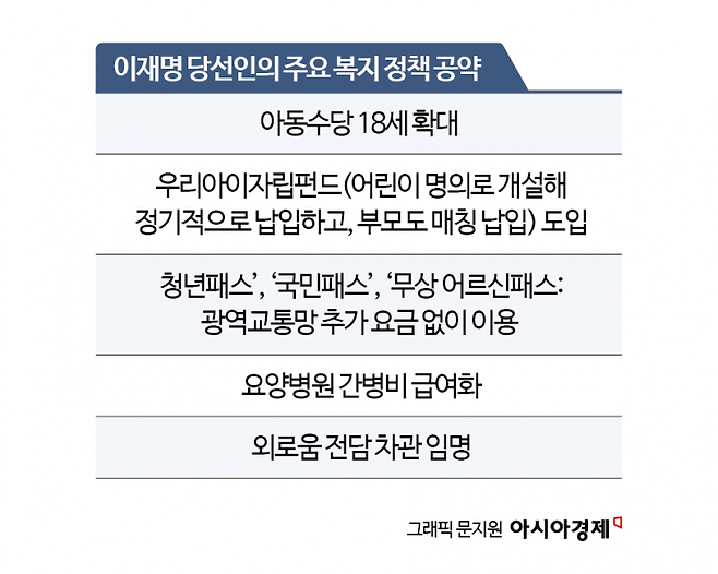 이재명 더불어민주당 후보가 대통령에 당선되면서 출산·양육·노후까지 전 생애 단계에 걸친 소득 보장이 강화될 것으로 전망된다. 아동수당 지급 대상을 18세까지 늘리고 요양병원 간병비 급여화를 지원해 아이와 노인 돌봄에 드는 개인의 비용을 크게 낮출 것으로 보인다. 청년과 노인층을 중심으로 교통 요금 부담을 줄이는 동시에 요양병원 간병비 급여화도 추진한다. 다만 연금개혁 등 의제는 아직 원론적인 방향성만 언급하고 있어 세부적인 추진 내용은 제시되지 않았다.