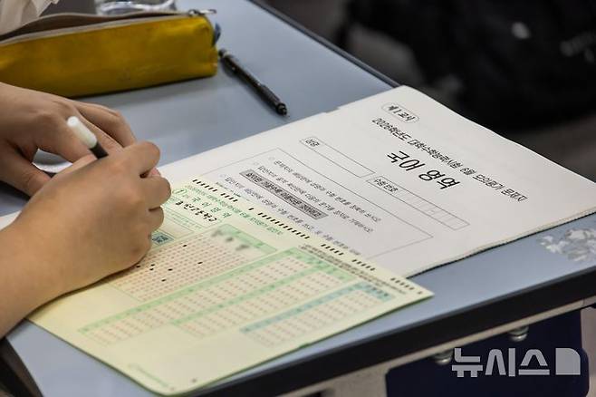 [서울=뉴시스] 사진공동취재단 = 2026학년도 대학수학능력시험 6월 모의평가 시행일인 4일 서울 금천구 금천고등학교에서 학생들이 OMR 카드를 작성하고 있다. 2025.06.04. photo@newsis.com