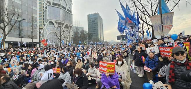 | ▲ 지난 3월 1일 오후 서울 종로구 안국역 삼거리에서 야 5당 공동으로 열린 '내란종식·민주헌정수호를 위한 윤석열 파면 촉구 범국민대회' 광경 |