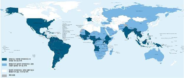 | ▲ 지카바이러스 전파 국가(영토), 2024. 5월 기준, WHO |