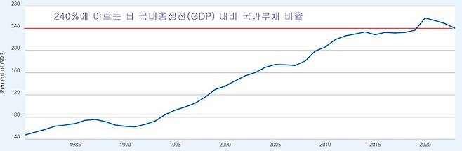 일본 국가 부채는 경제 규모(GDP) 대비 240%를 넘나드는 1130조엔(1경740조원)입니다. 경제 규모 대비 선진국 최악 수준이며 한국 국가 부채(1200조원)의 9배에 육박합니다.