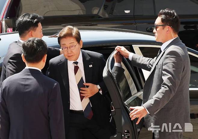 [서울=뉴시스] 국회사진기자단 = 이재명 대통령이 4일 오전 서울 여의도 국회에서 열린 제21대 대통령 취임선서식에 참석하기 위해 차에서 내리고 있다. 2025.06.04. photo@newsis.com