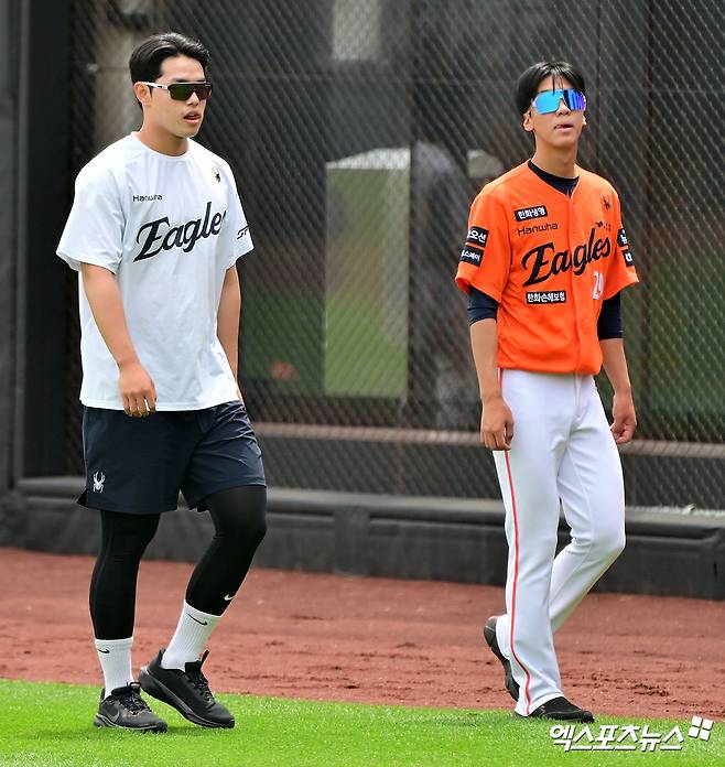 지난달 26일 1군 엔트리에서 제외, 5일부터 등록이 가능한 문동주는 2군에 있다가 3일 1군 선수단에 합류했다. 복귀가 멀지는 않았다. 김경문 감독은 "트레이너와 프로그램을 소화하면서 (로테이션을) 조정하려고 한다"라고 전했다.