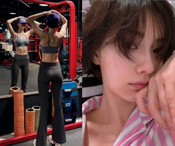 공개된 사진 속 나나는 크롭 브라톱에 플레어 라인의 요가 팬츠를 매치해 군살 하나 없는 탄탄한 복부 라인을 드러내며 완벽한 '운동핏'을 완성했다.