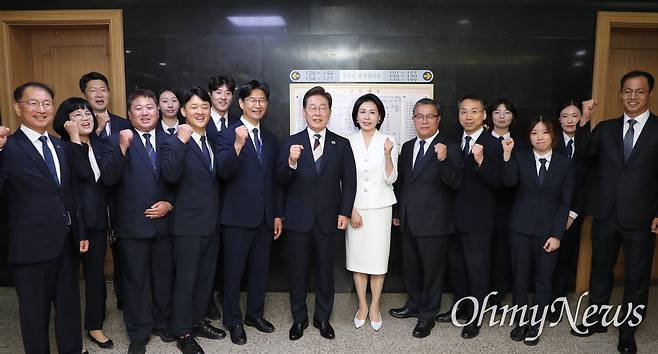 | ▲ 이재명 대통령과 부인 김혜경 여사가 4일 오전 서울 여의도 국회의사당에서 제21대 대통령 취임선서식을 마친 뒤 방호과 직원들과 만나고 있다. |