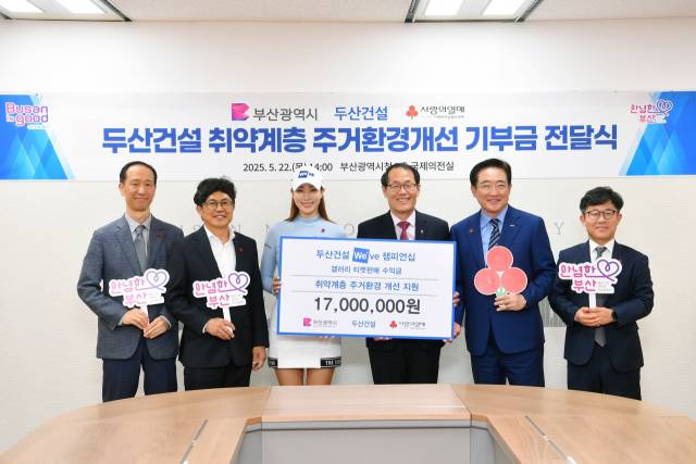 두산건설(대표이사 이정환)은 지난달 22일 부산시청 7층 국제의전실에서 부산사회복지공동모금회(회장 이수태)에 1700만 원의 기부금을 전달했다.