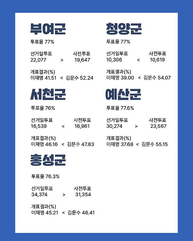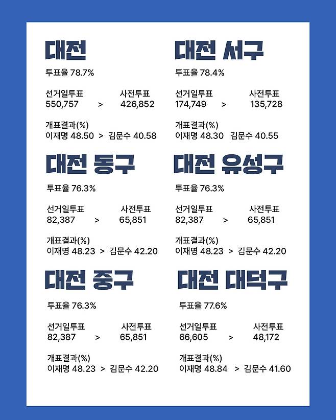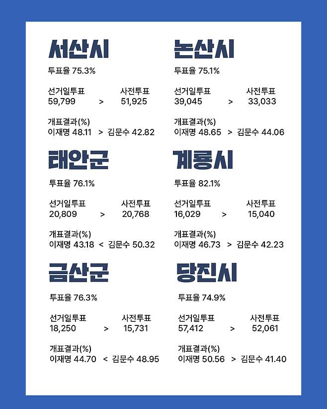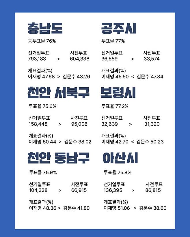 제21대 대통령선거ㅣ대전·세종·충남 개표단위별 개표결과