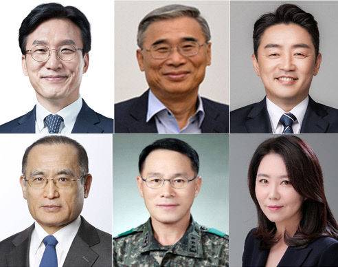 | 상단 왼쪽부터 김민석 국무총리 후보 지명자, 이종석 국가정보원장 후보 지명자, 강훈식 대통령실 비서실장. 하단 왼쪽부터 위성락 대통령실 안보실장, 황인권 대통령실 경호처장, 강유정 대통령실 대변인. 사진제공=대통령실 |