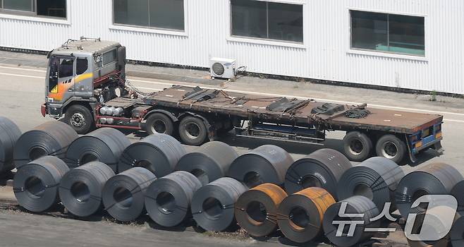 사진은 4일 경기 평택시 포승읍 평택항 수출 야적장에 철강 제품이 쌓여있는 모습. 2025.6.4/뉴스1