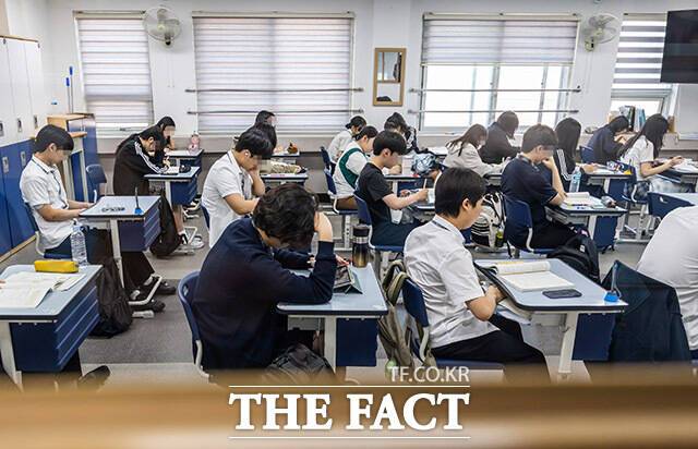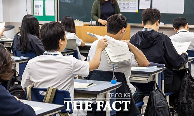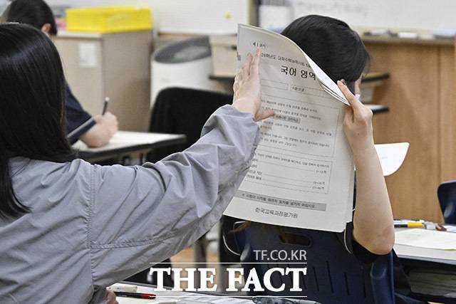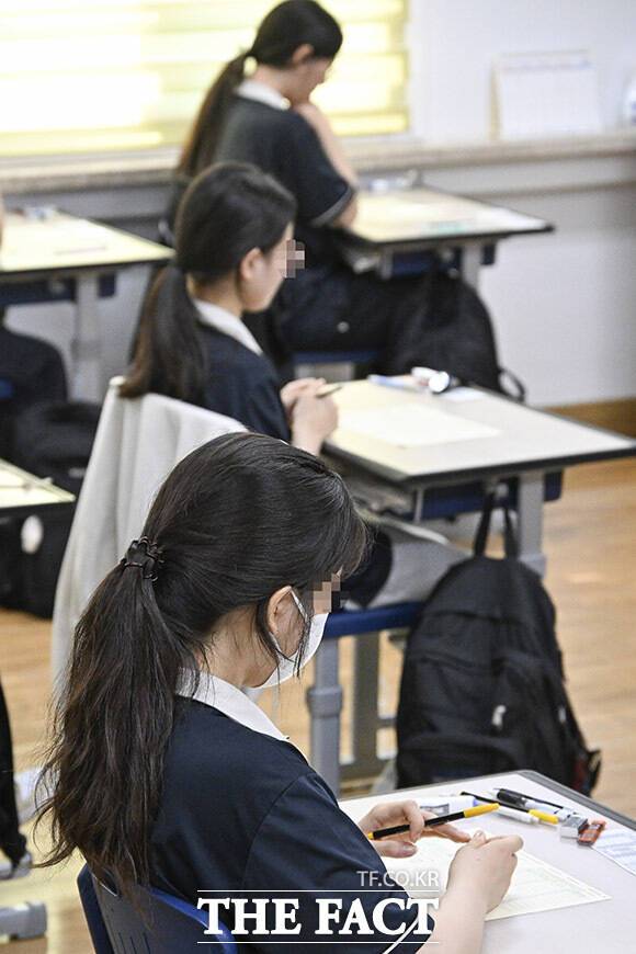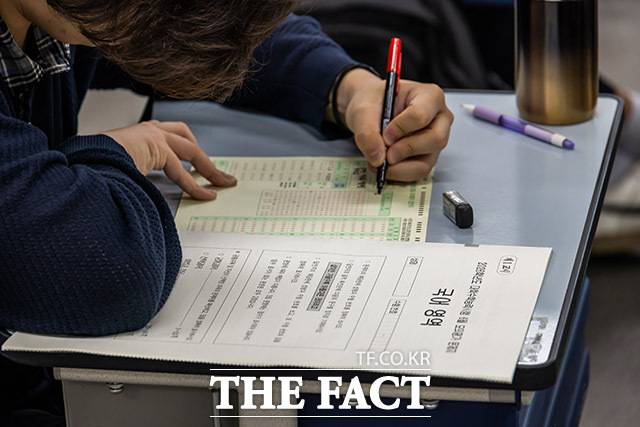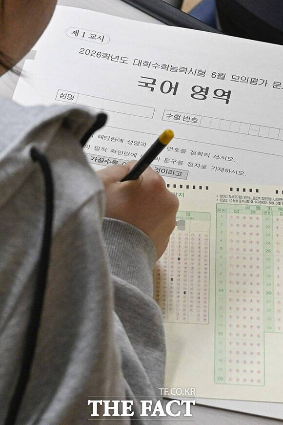 [더팩트ㅣ남용희 기자] 2026학년도 대학수학능력시험 6월 모의평가가 4일 오전 서울 광진구 광남고등학교에서 진행된 가운데 학생들이 OMR카드에 마킹을 하고 있다.