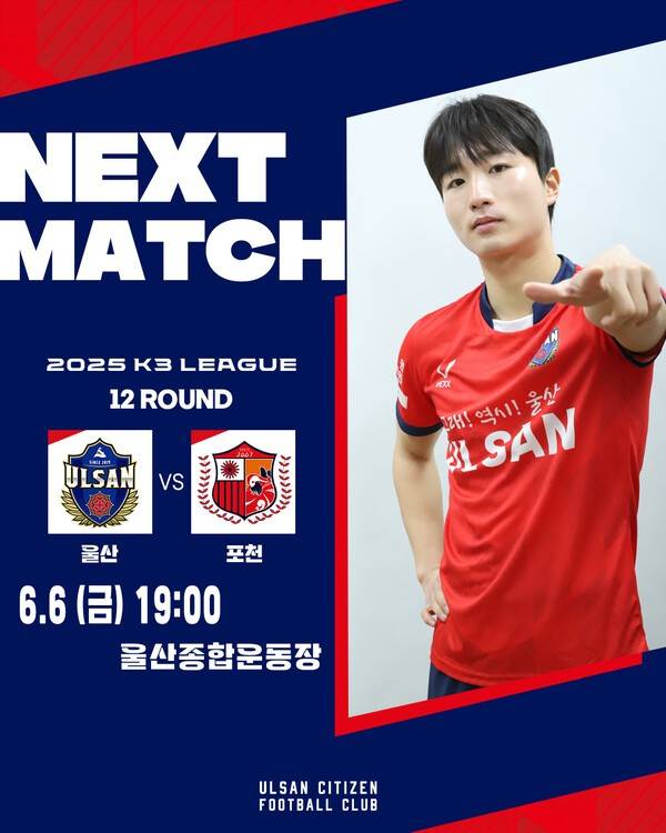 울산은 오는 6일 오후 7시 울산종합운동장에서 포천시민축구단과 2025 K3리그 12라운드 홈경기를 치른다.