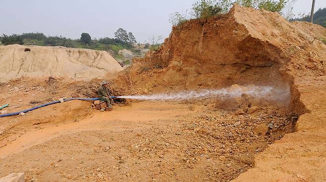 뉴욕타임스에 따르면 이 지역 노동자들은 광산 주변 언덕 꼭대기에 구멍을 파고 독성이 있는 황산암모늄을 물과 함께 주입합니다.