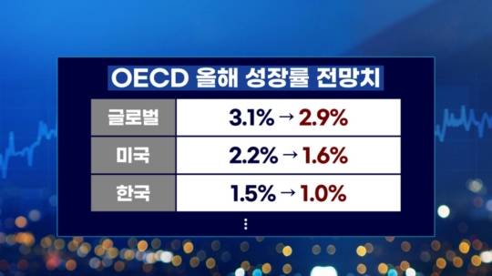 관세에다 내수 부진으로 올해 우리 경제 성장률 전망치도 뚝뚝 떨어지고 있습니다. 앞서 한국은행이 0.8%로 기존의 절반 수준으로 내린 가운데 어제는 경제협력개발기구, OECD 역시 올해 우리나라 성장률 전망치를 기존 1.5%에서 1%로 내렸습니다. 물론 우리나라만 내린 것은 아니고요, 전세계 전망치와 미국의 전망치 역시 하향 조정했지만 우리나라 경제상황이 암울하다는 점 다시 한번 확인할 수 있습니다.