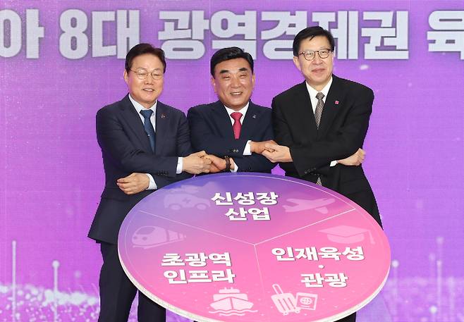 | ▲ 박완수 경남도지사(왼쪽부터), 김두겸 울산시장, 박형준 부산시장이 지난해인 2024년 3월 11일 오후 울산시청 대회의실에서 ‘제2회 부울경 정책협의회’를 열고 있다. |
