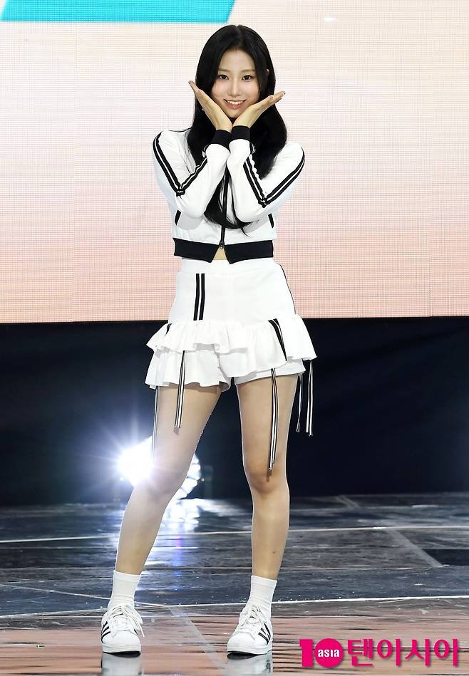 [텐아시아=조준원 기자]걸그룹 유스피어(USPEER/여원, 소이, 시안, 서유, 다온, 채나, 로아) 다온이 4일 서울 마포구 SBS 프리즘타워에서 열린 첫 싱글 앨범 ‘스피드 존(SPEED ZONE)’ 쇼케이스에 참석해 포즈를 취하고 있다.