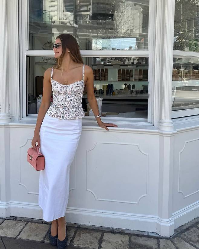 같은 화이트 롱스커트 라도 어떻게 매치하는지에 따라 그 무드는 완전히 달라지는 법이죠. 사라 워커는 여성스러운 플라워 코르셋 톱에 힐을 매치해 로맨틱하게, 줄리는 박시한 셔츠에 라탄 백, 우아한 가죽 샌들을 더해 꾸미지 않은 듯 자연스러운 룩을 연출했습니다.