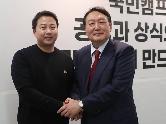 | ▲ 2024년 4월 5일 정연욱 국민의힘 후보를 향해 "장예찬 공격할 시간에 이재명과 민주당을 공격하라"라며 장예찬 무소속 후보가 함께 올린 사진. 그는 지난 대선에서 윤석열 대통령의 1호 청년참모로 불렸다. |