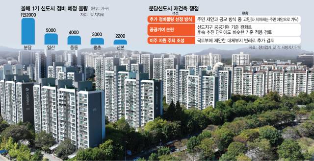 4일 정비 업계에 따르면 성남시는 올해 분당 정비 물량을 선정하는 방식을 놓고 장고를 거듭하고 있다. 앞서 국토교통부와 성남·고양·안양·군포·부천시 등 5개 지방자치단체는 지난해 11월 1기 신도시 중 가장 먼저 재건축을 진행할 선도지구 약 3만 6000가구를 선정한 바 있다. 지난해에는 각 지자체가 기준을 제시한 후 각 단지가 이에 맞춰 신청하는 공모 방식을 택했다. 하지만 경쟁 과열과 주민 피로 등의 부작용으로 성남시를 제외한 4개 지자체는 올해 일찌감치 주민 제안 방식으로 가닥을 잡은 상태다. 국토교통부와 지자체는 이르면 이달 중 정비 물량과 방식을 발표할 예정이다.