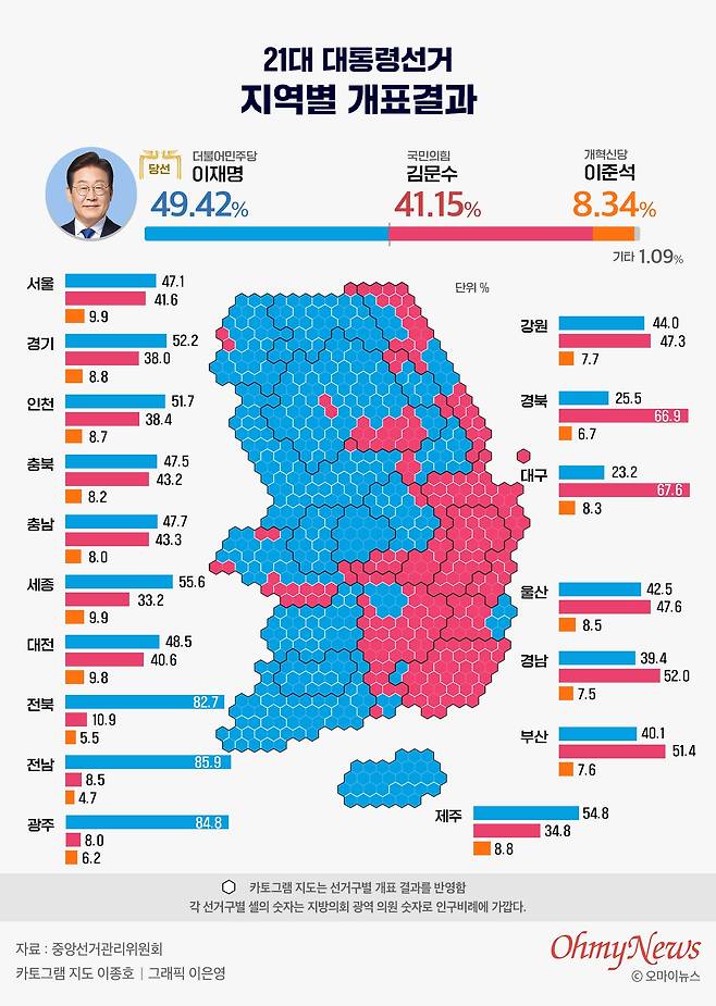 [오마이뉴스 그래픽] 21대 대선 지역별 개표결과