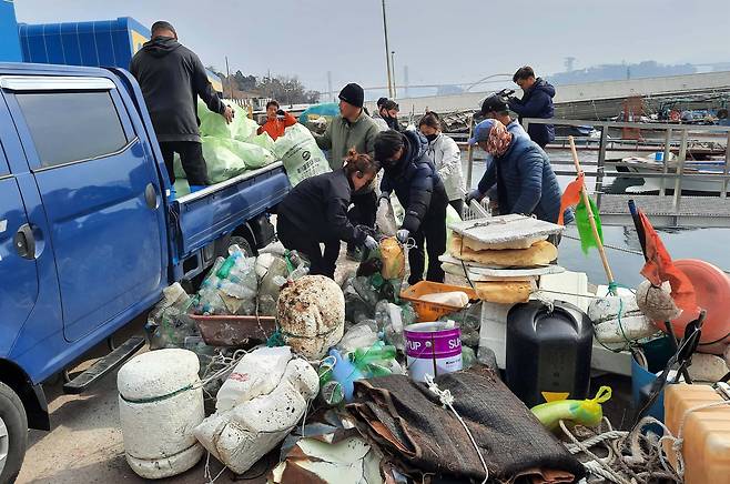 해양쓰레기는 스티로폼, 페트병, 로프(줄), 통발, 의자, 양동이, 일회용기, 비닐, 폐그물, 담배꽁초, 전기장판, 친환경 부자, 문짝, TV, 냉장고 등 무려 25종 이상에 달했다는 것이다.
