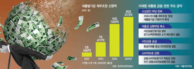 정부는 새출발기금 확대 방안 역시 들여다보고 있다. 금융 감독 당국의 한 고위 관계자는 “새출발기금 지원 요건을 완화하는 안을 검토하고 있다”며 “새출발기금의 경우 여당과 야당 모두 대선 공약 때 내세운 부분이라 빠르게 추진이 가능할 것으로 본다”고 설명했다.