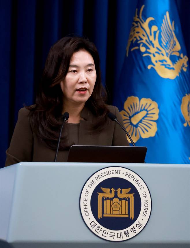 | ▲ 강유정 대통령실 대변인이 4일 서울 용산 대통령실 청사에서 이재명 대통령 취임 첫날 일일 브리핑을 하고 있다. 2025.6.4 |