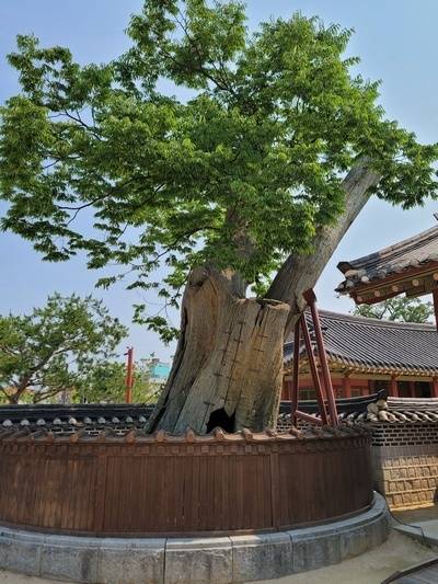 | ▲ 화성행궁 600년 느티나무/ 속은 텅비어 있는데 생생하니 잎은 생생하다. 당시의 회갑연도 지켜봤을까. |