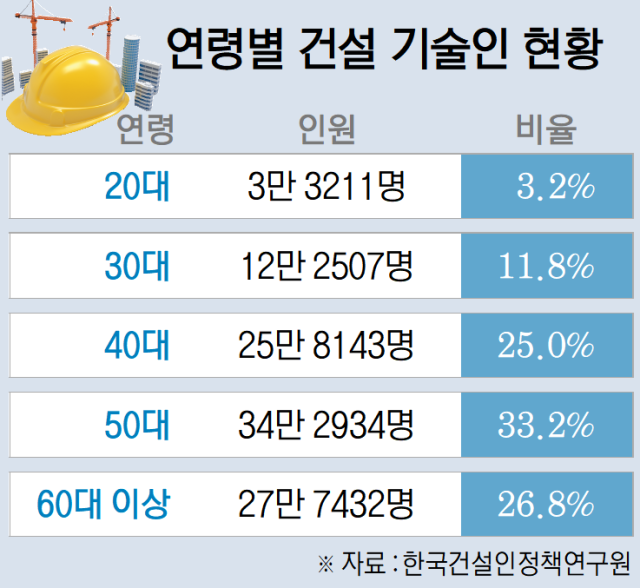 건설 기술인은 건축·토목·기계·전기 등을 전공했거나 각종 건설 관련 분야에서 일정 수준의 자격이나 경력을 갖춘 사람을 뜻한다. 건설업과 관련 학과가 젊은 세대로부터 외면 받으면서 전문 기술을 갖춘 젊은 숙련공들은 현장에서 찾아보기 힘들게 됐다. 한국건설인정책연구원은 8년 뒤인 2033년에는 20대 건설 기술인이 0.6%, 30대가 3.6%로 쪼그라들 것이라는 예측을 내놓기도 했다.
