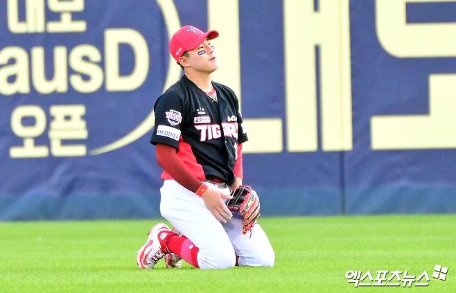 (엑스포츠뉴스 잠실, 김근한 기자) KIA 타이거즈 외야수 최원준이 또 아쉬운 포구 실책을 저질렀다. 하지만, KIA 이범호 감독은 이번엔 문책성 교체 없이 최원준을 끝까지 그라운드에서 기용했다. 그 결과 최원준은 3안타 맹타로 결자해지했다.