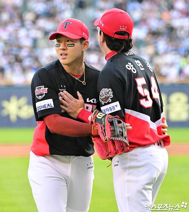 이 감독은 "어떻게 하면 팀 타선을 강하게 만들까 고민하는데 어제처럼 최원준과 윤도현 선수가 어제처럼 잘 쳐주니까 팀 타선 자체가 조금 더 빨라진 느낌도 들더라. 2아웃 이후라도 연타를 통해서 득점 연결 고리를 만든 그림이 굉장히 만족스러웠다"라고 미소 지었다.