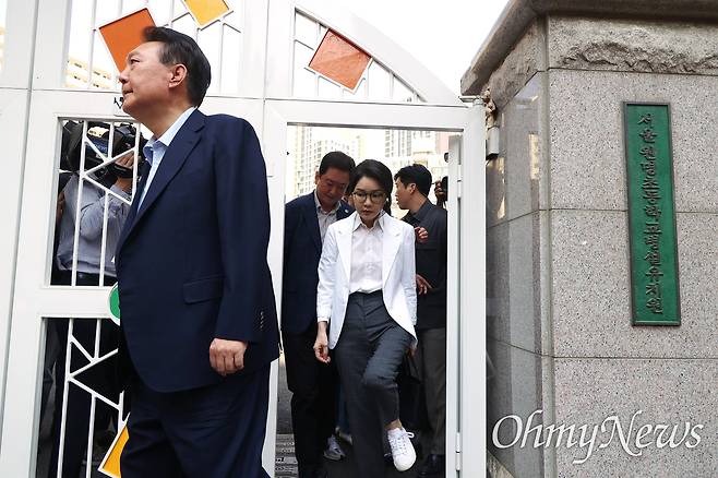 | ▲ 21대 대통령 선거날인 3일 오전 내란 우두머리 혐의로 재판중인 윤석열 전 대통령이 부인 김건희씨와 서울 서초구 원명초등학교에 설치된 투표소에서 투표를 한 뒤 떠나고 있다. |