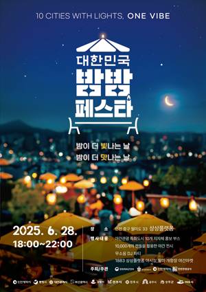 28일 오후 6시부터 10시까지, 상상플랫폼 웨이브홀에서는 문화체육관광부와 한국관광공사, 인천시 등 10개 야간관광 특화도시가 공동 주관하는 '대한민국 밤밤페스타'가 개최된다. 야간관광도시 10곳 중 인천은 부산에 이어 2번째로 개최된다. 1만 여개의 LED 캔들라이트 포토존 및 10개 시·도의 대표 디저트와 야간관광지를 소개하는 홍보부스, 친환경 음악파티인 무소음 DJ 파티(Silent Disco) 등 다양한 야간 콘텐츠를 선보인다. 특히 무소음 디제잉 파티는 헤드셋을 착용해 즐기는 방식으로 현장감과 몰입감을 동시에 제공하는 MZ세대 맞춤형 프로그램으로 기대를 모은다. 또한, 행사 당일에는 월미개항장 야간마켓 상권(상점 103개소)에서 최소 결제금액 없이 사용 가능한 특별 할인쿠폰(3천 원)이 선착순으로 제공되어, 야간마켓 할인쿠폰과 중복사용이 가능하다. 1883 상상플랫폼 야시장에서도 밤밤 페스타를 위한 야식 특화 메뉴 특별할인쿠폰(3천 원)을 오후 6시부터 선착순 100명에게 제공할 예정이다.