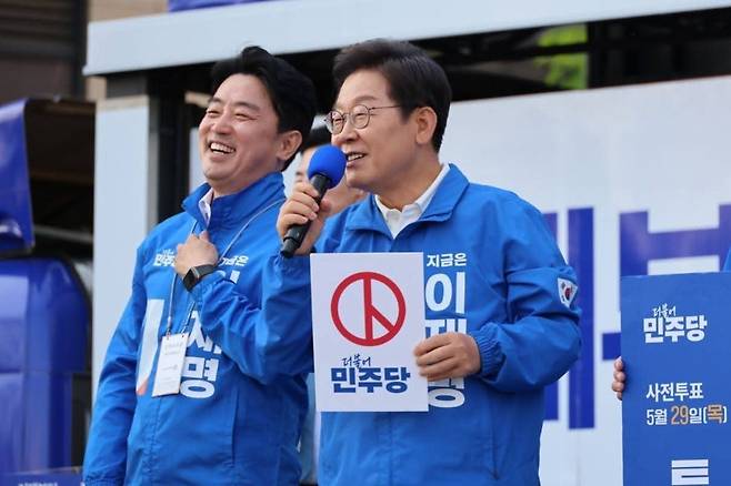 | ▲ 강훈식 의원과 이재명 대통령이 지난 5월 25일 충남 아산 유세에 함께하고 있는 모습. |