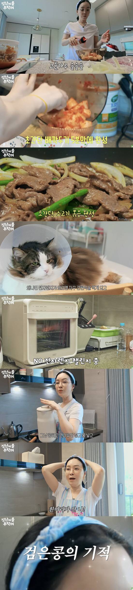 먼저 김정난은 검은콩과 루피니빈을 듬뿍 넣어서 밥을 지었다. 이어 초간단 배깍두기를 만든 김정난은 야채와 소고기, 굴소스를 넣고 소고기 볶음을 만들었다.