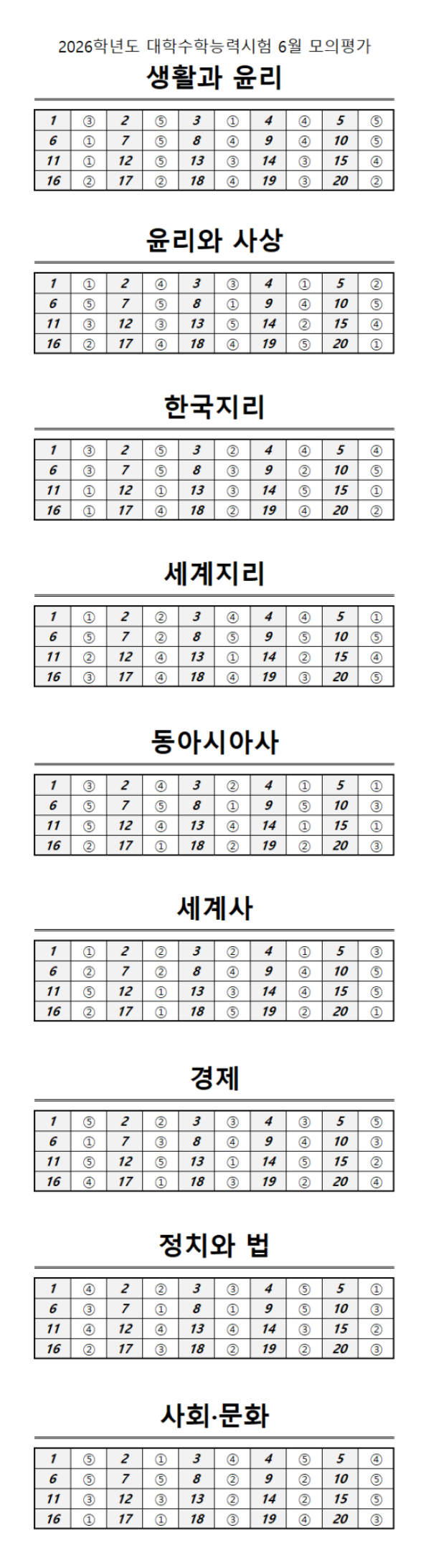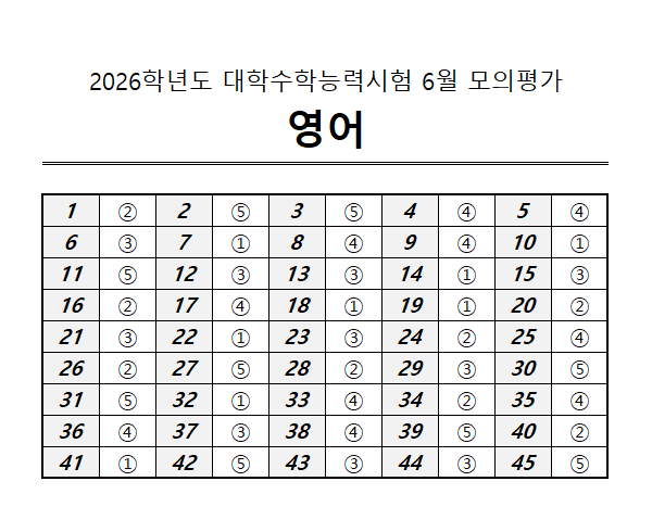 [이하 2026학년도 대학수학능력시험 6월 모의평가 정답표]