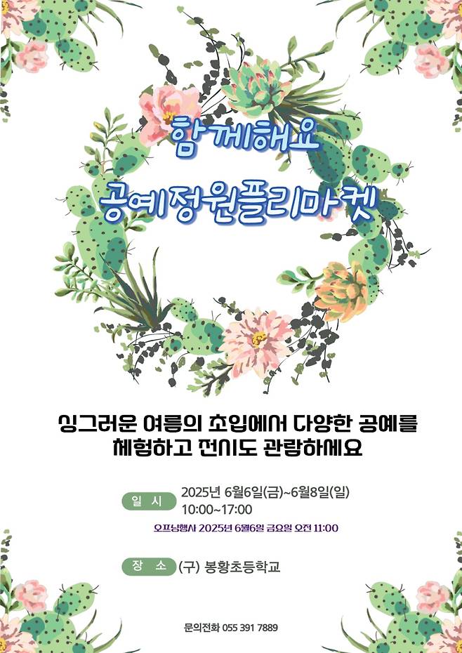 밀양시 초동면(면장 서연주)은 오는 6일부터 8일까지 3일간 봉황체험학습장(구. 봉황초등학교)에서‘제4회 공예정원플리마켓’을 개최한다.