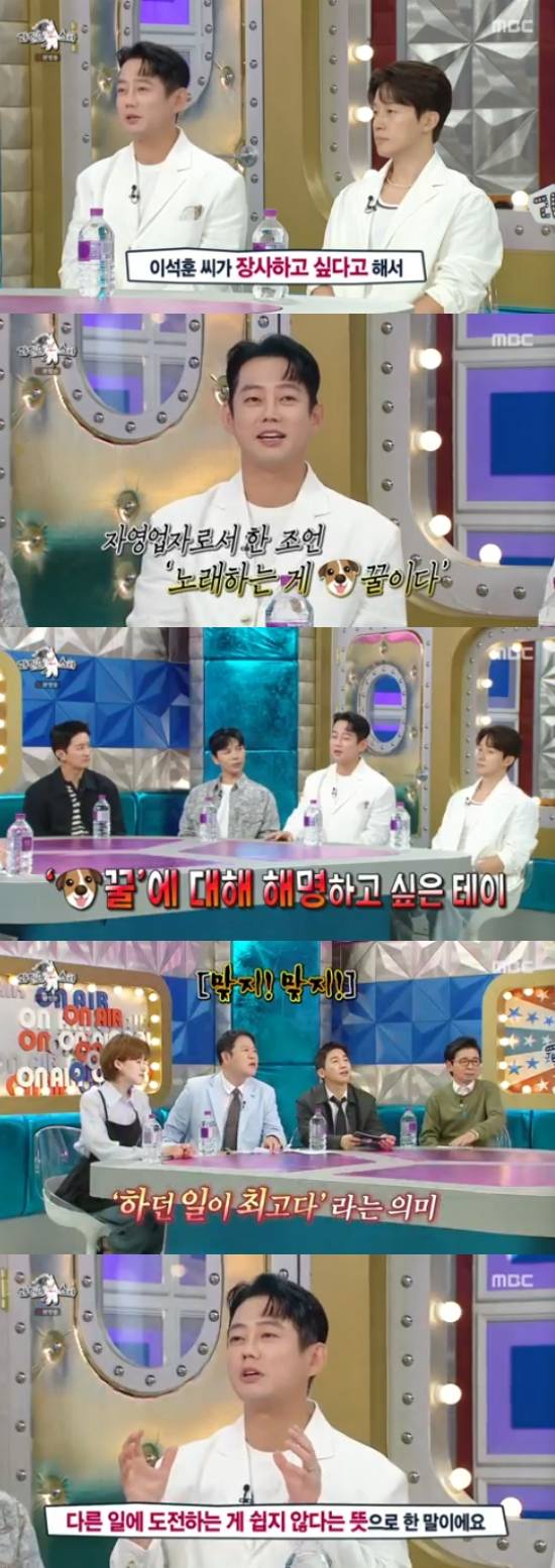 테이는 "이석훈 씨가 장사를 한다고 했을 때 '연예인이 개꿀'이라는 말을 했었다. 그런데 오해가 있다"고 말했다.