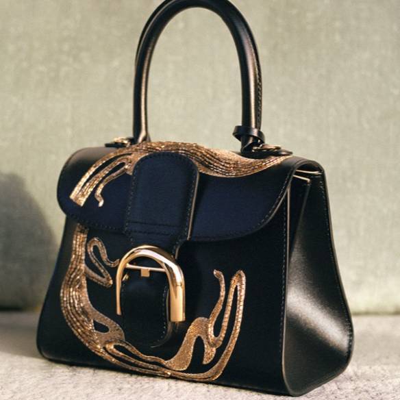 오트 쿠튀르 의상 수준으로 제작되는 델보의 제품 스타일은 각각 고유한 기법을 특징으로 하는데, 이번 컬렉션에서 브리앙 미니와 땅페트 스몰은 아르누보 인테리어의 빛나는 타일을 연상시키는 모자이크 자수로 재탄생한 것이다. 카프리스 토이는 블랙 카프 가죽을 금빛 금속과 섬세한 진주, 금속 실로 장식했다. 튤립, 붓꽃 같은 식물 모티프는 브리앙과 빵 미니 버킷 모델에 적용돼 자연에서 직접 가져온 듯한 인상을 준다. 대표 모델 ‘브리앙’은 곡선형 플랩과 안정적 구조를 갖추고 있으며, 고전적인 브뤼셀 건축물의 파사드를 떠올리게 한다. 플로럴 패턴의 인그레이빙은 자연의 이미지를 과하지 않게 담아내며, 기능성과 미학을 동시에 고려하고 있다.