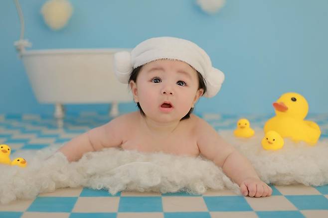 하루는 목욕탕 세트를 배경으로 귀여움을 뽐냈다.